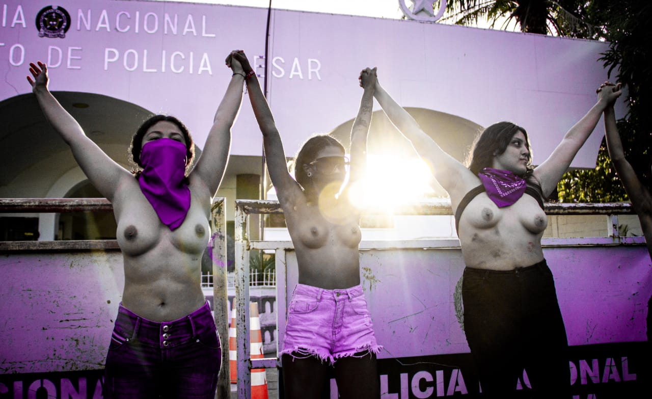 Lo más atípico del caso, fue cuando varias de ellas se libraron de sus camisetas y con los senos al aire, pidieron respeto. “Fue una manera de demostrar que el feminismo se respeta, somos indefensas y vulnerables a cualquier daño”, manifestó Fabiana Acuña, una de las participantes en la concentración.