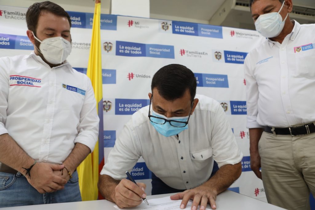 Firmaron el subdirector general de Prosperidad Social, Juan Camilo Giraldo, y los alcaldes de Gamarra, Diomar Claro; Río de Oro, José Santana; San Martín, Leusman Guerra; y Chimichagua, Celso Moreno. El director regional de Prosperidad Social en el departamento, William Morales, acompañó el evento.
