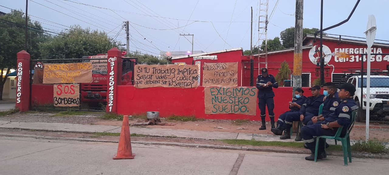 Con un plantón permanece el Cuerpo de Bomberos Voluntarios del municipio de La Jagua de Ibirico, por la falta de pago desde hace cuatro meses, la carencia de combustible y mantenimientos para las maquinarias, deudas con la seguridad social y otros beneficios que son incumplidos por parte de la comandancia.