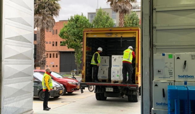 Las vacunas llegaron en un vuelo comercial al Aeropuerto Internacional El Dorado y fueron trasladadas a las bodegas del Ministerio de Salud en la Zona Franca de la capital del país.