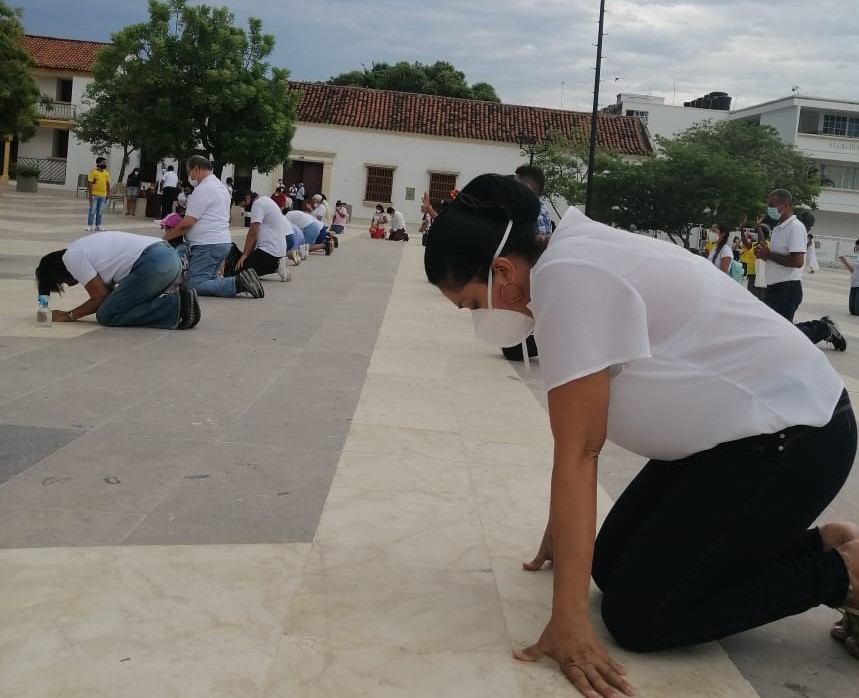De rodillas, con las manos y sus miradas hacia el cielo, se mostró el pueblo vallenato que de corazón pidió a Dios interceda para vencer la pandemia que tantas muertes ha dejado, además de superar la difícil situación social que atraviesa el país, a causas de las acciones por el Paro Nacional.