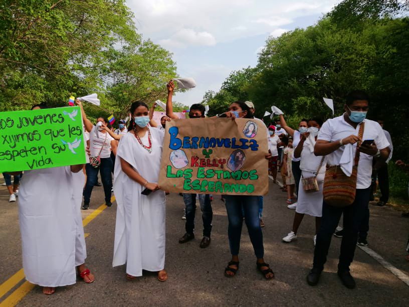 Comunidad indígena de Río Seco-Makumake del cabildo kankuamo, marchó la tarde de este domingo, para exigir el regreso con vida de Bernabet Zapata y su hija Kelly Villazón, de 16 años, quienes están desaparecidas desde las 5:00 de la mañana del pasado viernes 11 de junio, cuando salieron de la finca donde trabajaban, ubicada en la vía a Murillo-Río Seco.