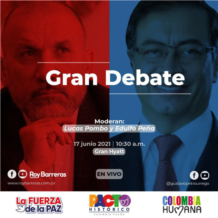 El jueves 17 de junio tendrá lugar el primer debate de los precandidatos del Pacto Histórico – hasta ahora confirmados – Gustavo Petro y Roy Barreras.