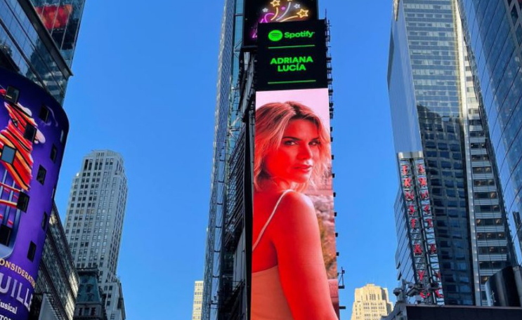 Este jueves el actor Santiago Alarcón compartió una foto en la que se veía a Adriana Lucía en uno de los anuncios más importantes de Spotify en el Times Square de Nueva York. La imagen de la costeña fue proyectada porque Lucía hace parte de la lista Equal Colombia de la plataforma de streaming que fomenta la igualdad de género en la música.