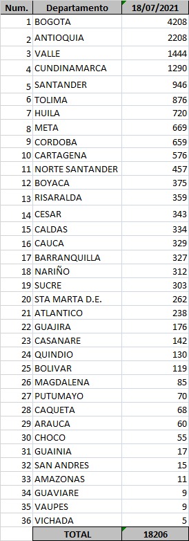 Se reportan 18.206 nuevos casos de coronavirus en Colombia