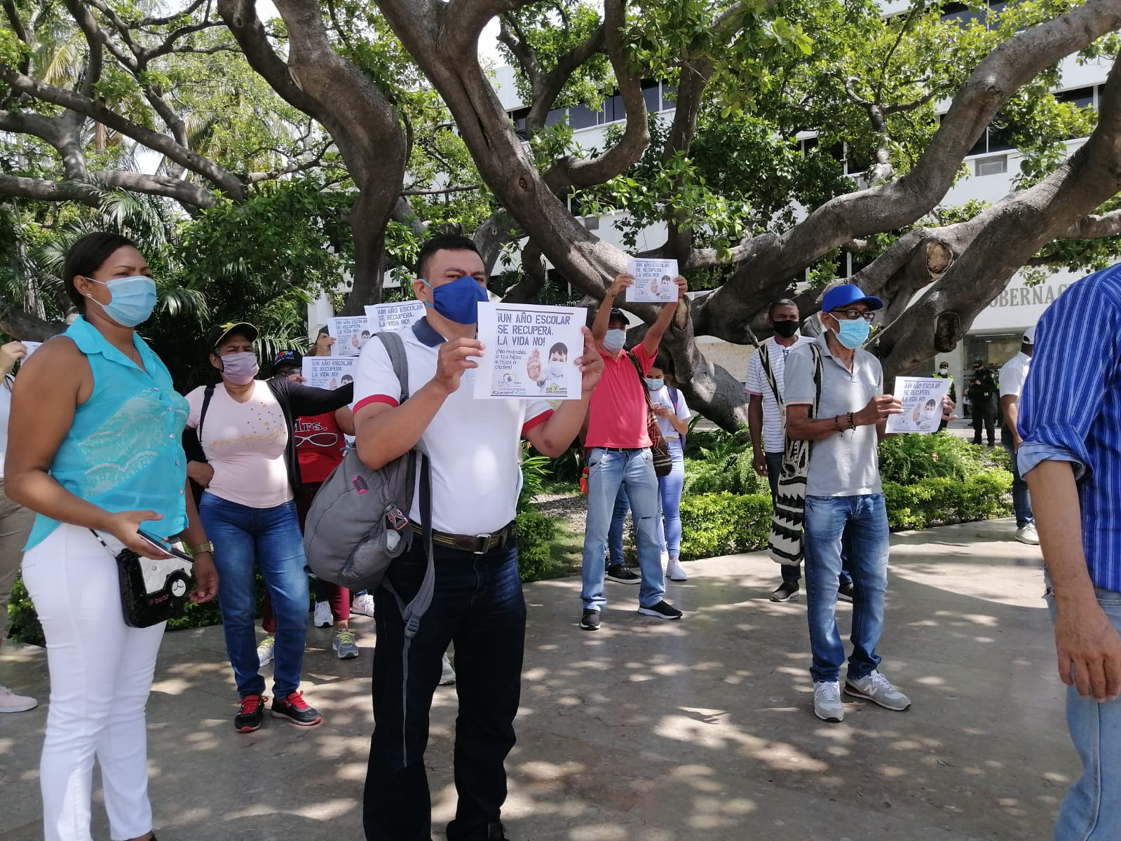 En la Plazoleta de la Gobernación del Cesar, un grupo de padres de familia de las instituciones educativas de Valledupar, realizaron un plantón para reiterar su rechazo al regreso de las clases presenciales, ya que consideran que no están las condiciones dadas por el mal estado de los colegios y la grave incidencia del Covid-19 en el territorio.