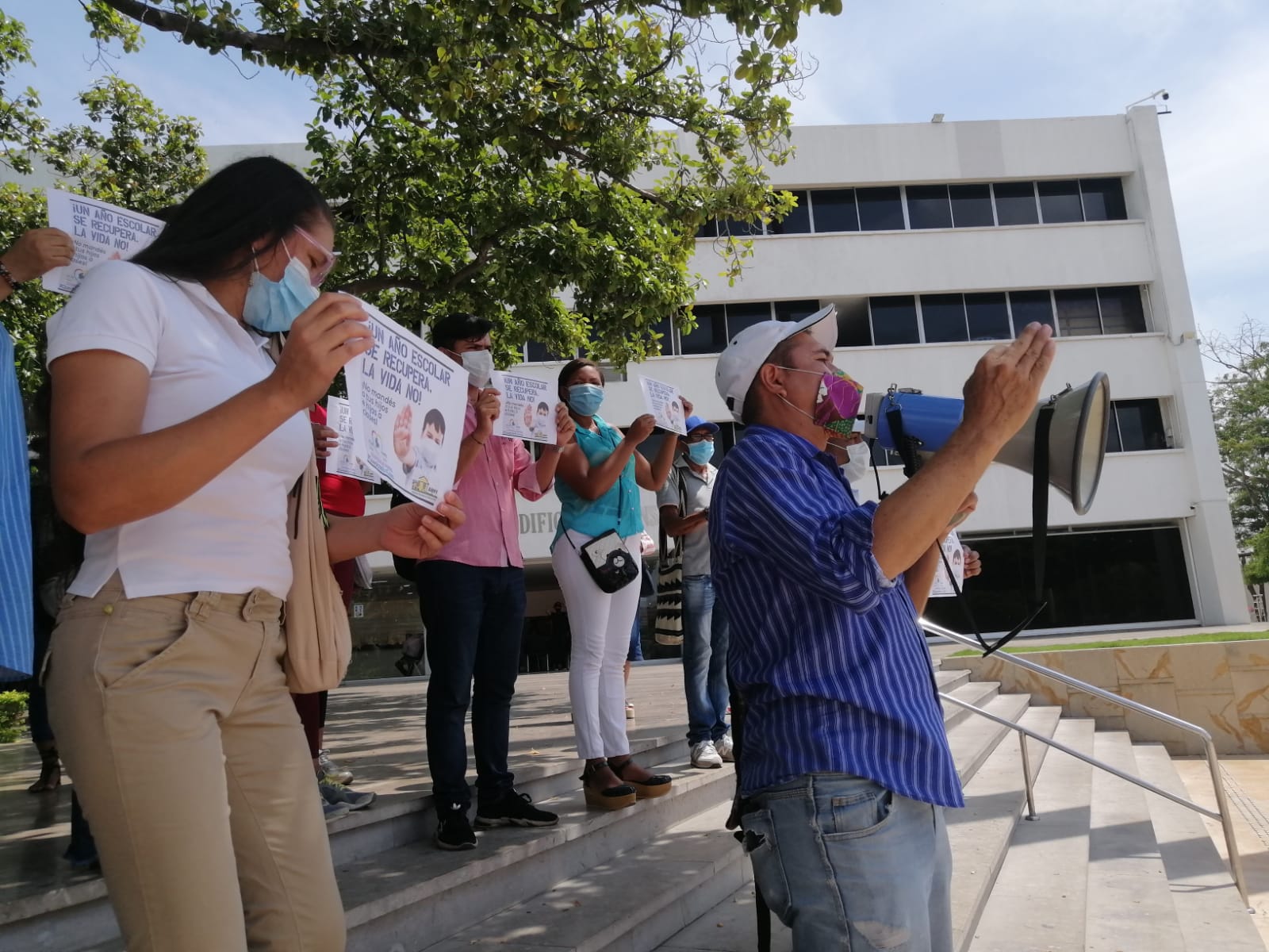 “Un año escolar se recupera, la vida no. No mandes a tus hijos e hijas a clases…”, fueron algunas de las consignas que ante un megáfono expresó el grupo de padres de familia, que imploran ser escuchados por las autoridades ante la solicitud de terminar el año escolar en virtualidad.