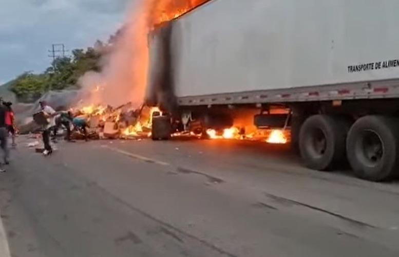 Este hecho sucedió el pasado jueves a las 6:30 de la tarde, cuando dos tractocamiones que transportaban víveres y materiales de construcción respectivamente, chocaron de frente, al parecer, cuando uno de estos invadió el carril contrario.