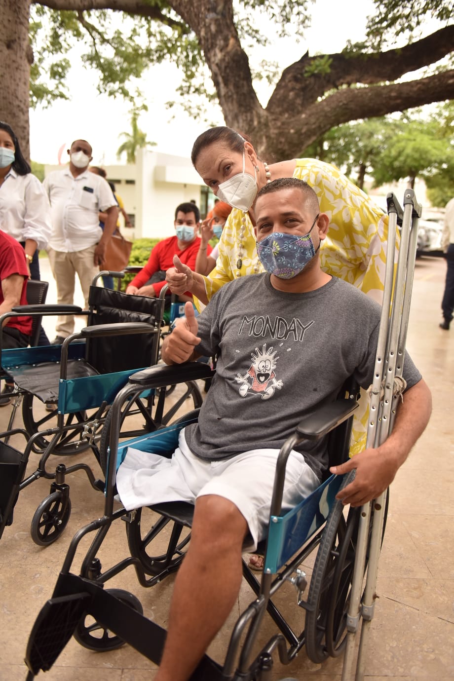 En medio de un acto lleno de sentimiento, Ana Ligia Gómez, madre de uno de los beneficiarios no escatimó en expresar su agradecimiento por la silla de ruedas entregada a su hijo de 52 años, quien después de un accidente de tránsito que le produjo un trauma craneoencefálico, redujo sustancialmente su movilidad. “No tengo como agradecer lo que hacen por mi hijo y por mí. No es fácil para quienes debemos cuidar a nuestros hijos o familiares con discapacidad y este gesto hoy nos facilita la vida. Muchas gracias.”, dijo.
