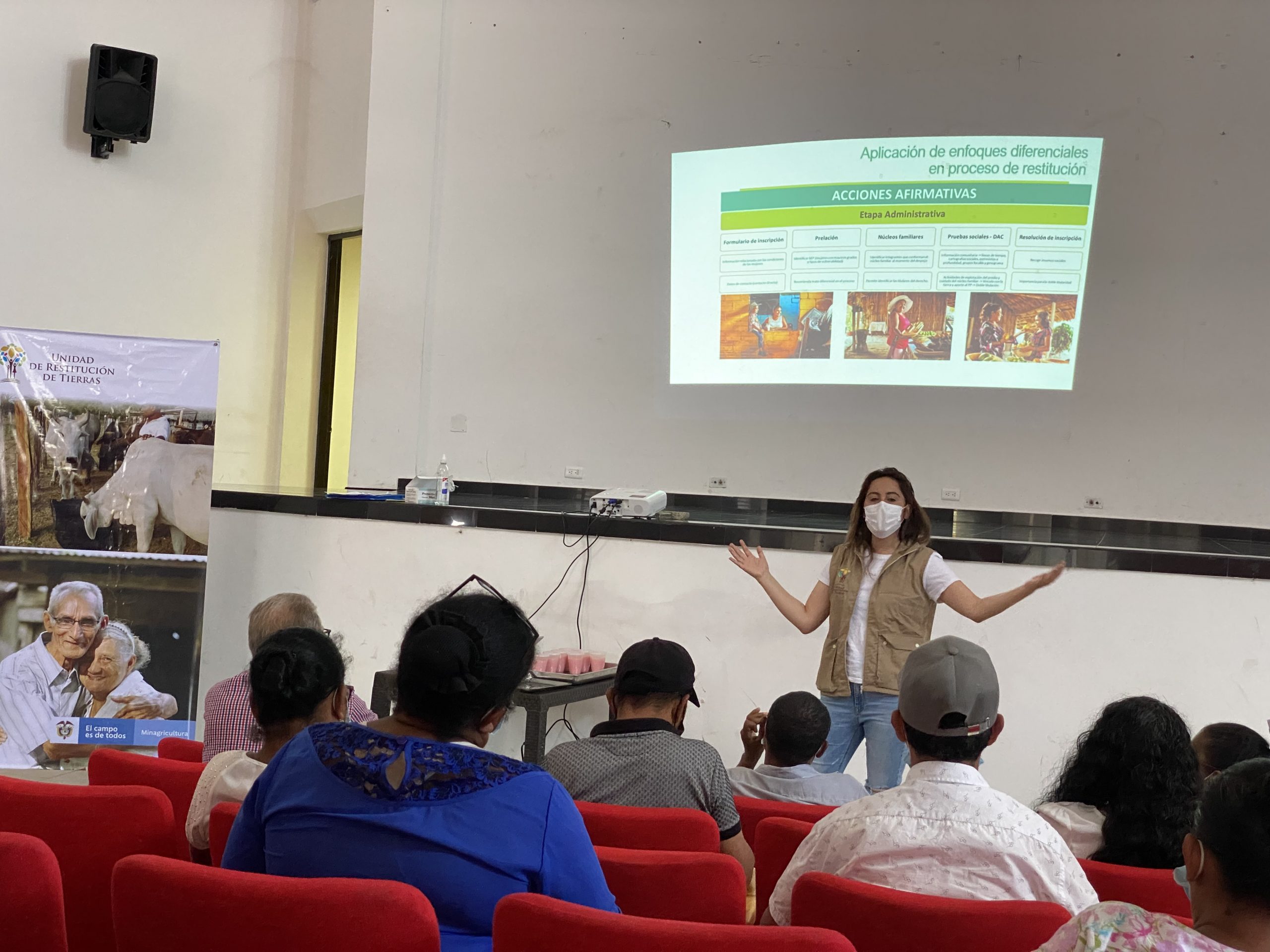 La directora de la Unidad de Restitución de Tierras en Cesar y La Guajira, Claudia Manotas, precisó que la implementación de la línea de tejido social y construcción de paz pretende lograr un acercamiento entre la entidad y los solicitantes que participan en el proceso de restitución de tierras en todo el país.