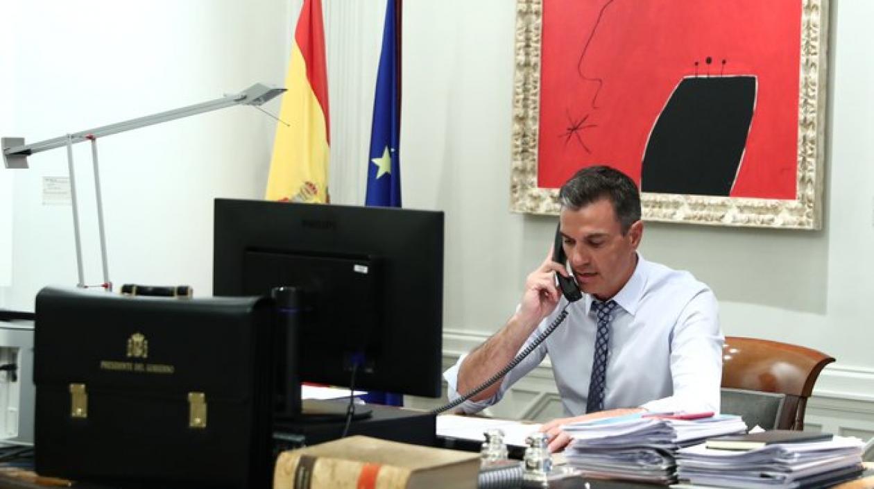 Sánchez acompañó su mensaje en la red social (escrito en inglés y en español) con una fotografía del momento en el que conversaba telefónicamente con Biden desde su despacho del Palacio de la Moncloa.