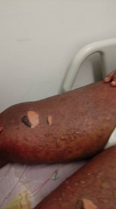 Han sido días y noches interminables, entre el dolor y la afectación de una piel, que con el pasar de las horas, se asemeja a grandes quemaduras. Doloroso, triste e indignante, entre esa agonía, espera por la valoración de un dermatólogo que no está disponible en la Clínica Médicos Ltda, donde recibe atención por parte de un infectólogo y cirujano plástico.