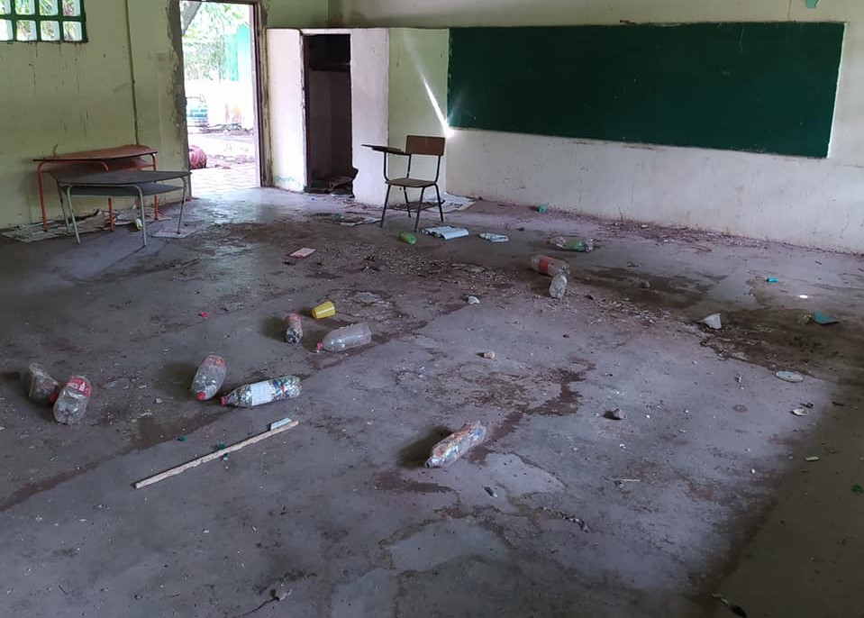 El panorama es desolador. Los salones no tienen puertas ni ventanas, el techo está en pésimas condiciones, y en algunos casos desprendido, no hay pupitres para los estudiantes y de paso, se han convertido en basureros, baños públicos y guaridas de delincuentes ante la falta de iluminación. La maleza también los invade y las baterías sanitarias se las han arrancado de ‘raíz’.