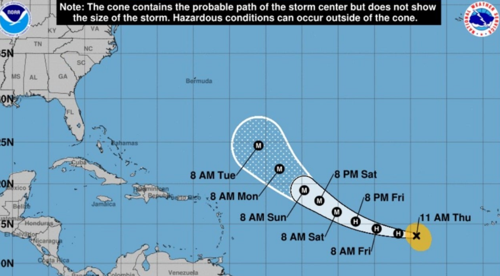 Los meteorólogos de NHC, con sede en Miami, prevén un giro gradual hacia el oeste-noroeste y se espera una disminución en la velocidad de avance el viernes.
