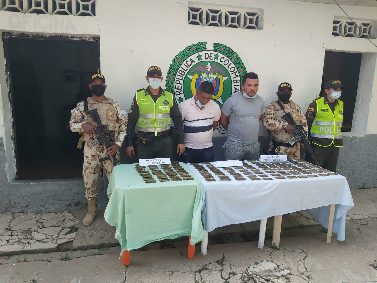 En el corregimiento de Mariangola, jurisdicción de Valledupar, fueron capturados en flagrancia dos sujetos quienes transportaban en un vehículo tipo taxi, 1.200 cartuchos para fusil.