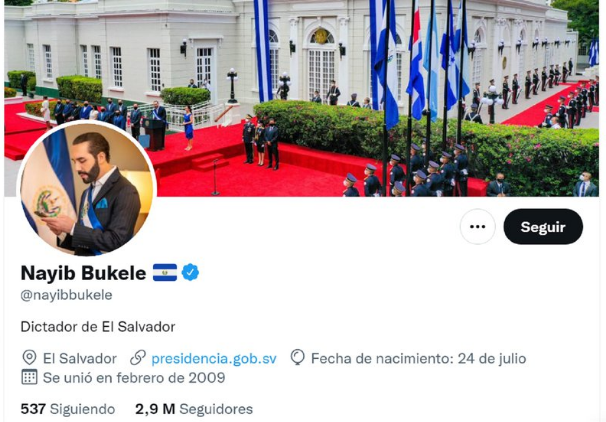 Nayib Bukele cambió su bío de Twitter: “Dictador de El Salvador”