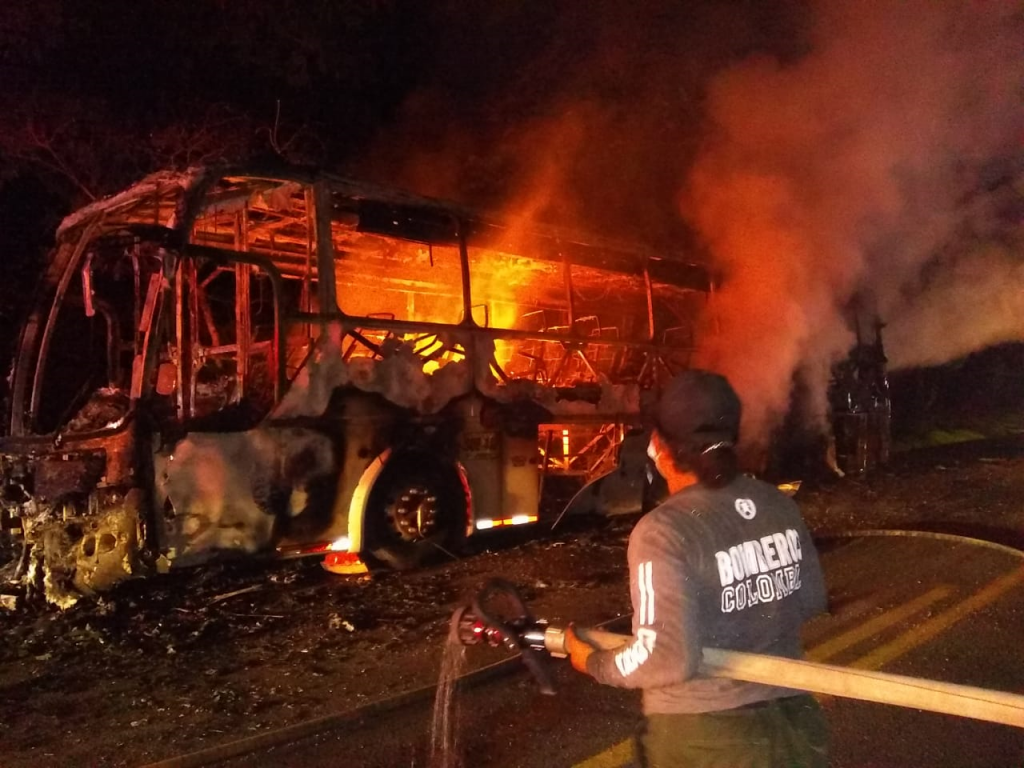 Un bus afiliado a la empres Cootrasegua de placas SUE-462, terminó completamente incinerado luego de presentar una falla mecánica.