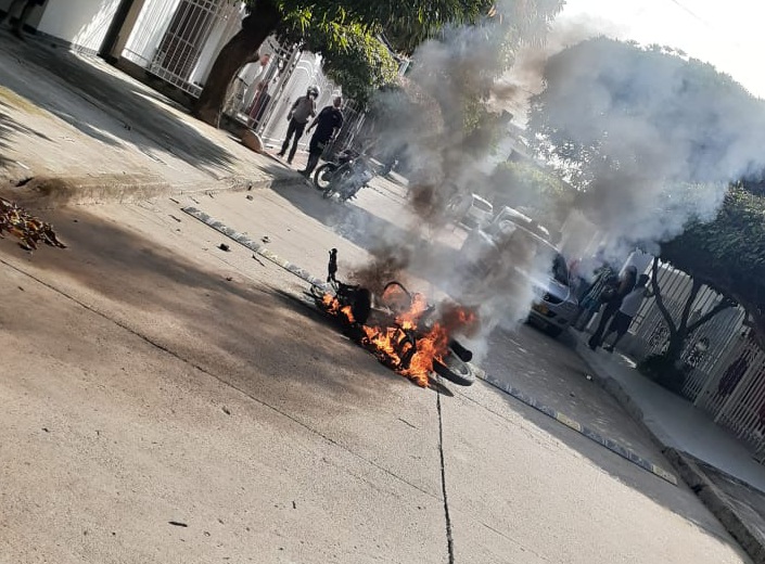 Argumentando estar cansados de los continuos atracos que se registran en el barrio La Esperanza de Valledupar, vecinos de este sector tomaron la justicia ‘por sus propias manos’ y quemaron la motocicleta de un presunto ladrón, al mismo tiempo que intentaron lincharlo.