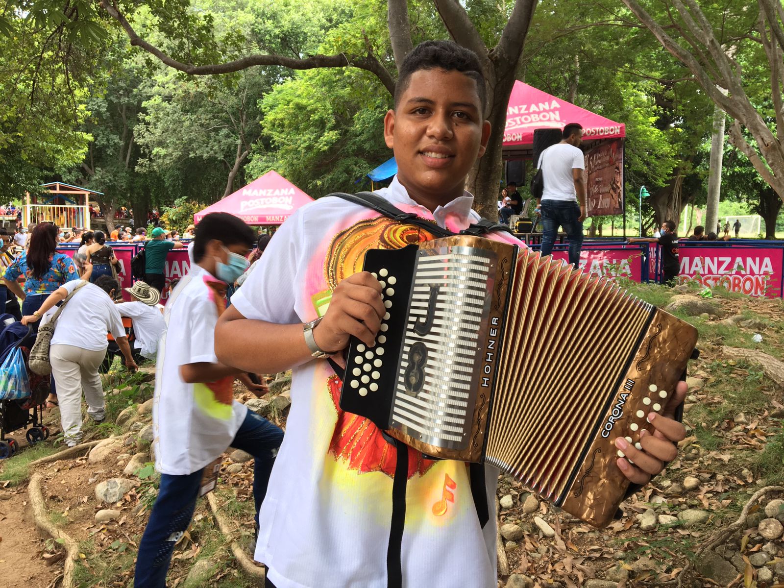 Con 16 años Juan Esteban Ochoa es uno de los participantes de la categoría juvenil en el 54 Festival de la Leyenda Vallenata. Este miércoles en una de las tarimas dispuestas en el Centro Recreacional la Pedregosa mostró su talento con los aires de paseo, en el cual interpretó ‘Cocoliche’, el merengue ‘Caminito Verde’, el son
