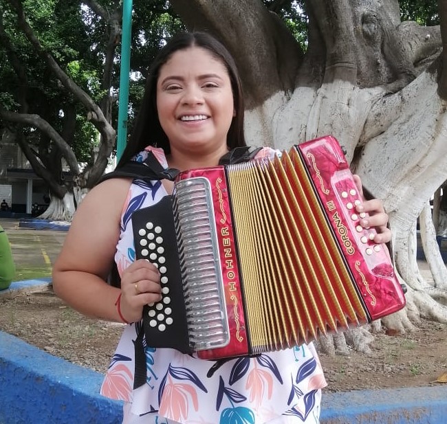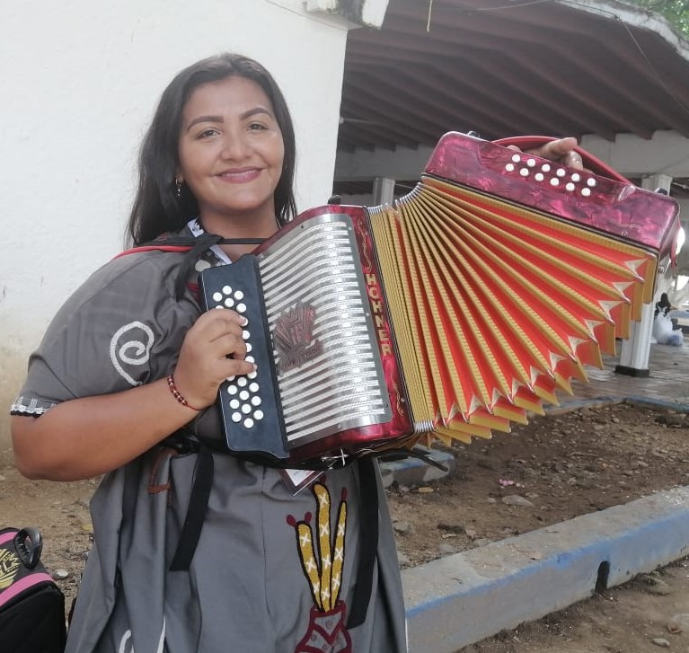 “Me he presentado en unos 20 festivales en todo el país. He ganado en la sabana, lo que es La Apartada-Códoba, Caucasia y en el 2019 gané en Valledupar el festival de mujeres en la categoría infantil. Mi pasión por el acordeón empezó desde los 11 años, es un sueño frustrado que tuvo mi papá de aprender a tocar el instrumento, por lo que siempre buscó que alguno de sus hijos se dedicara al acordeón”.