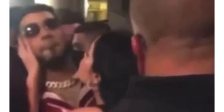 Los hechos se dieron al finalizar el encuentro deportivo y la mujer luchó para acercarse a su artista favorito y poder tomarse una foto con él. Cuando ya consigue la instantánea, sin pensarlo dos veces, le toma el rostro a Anuel para darle un beso y el cantante echó su cabeza para atrás y la rechazó.