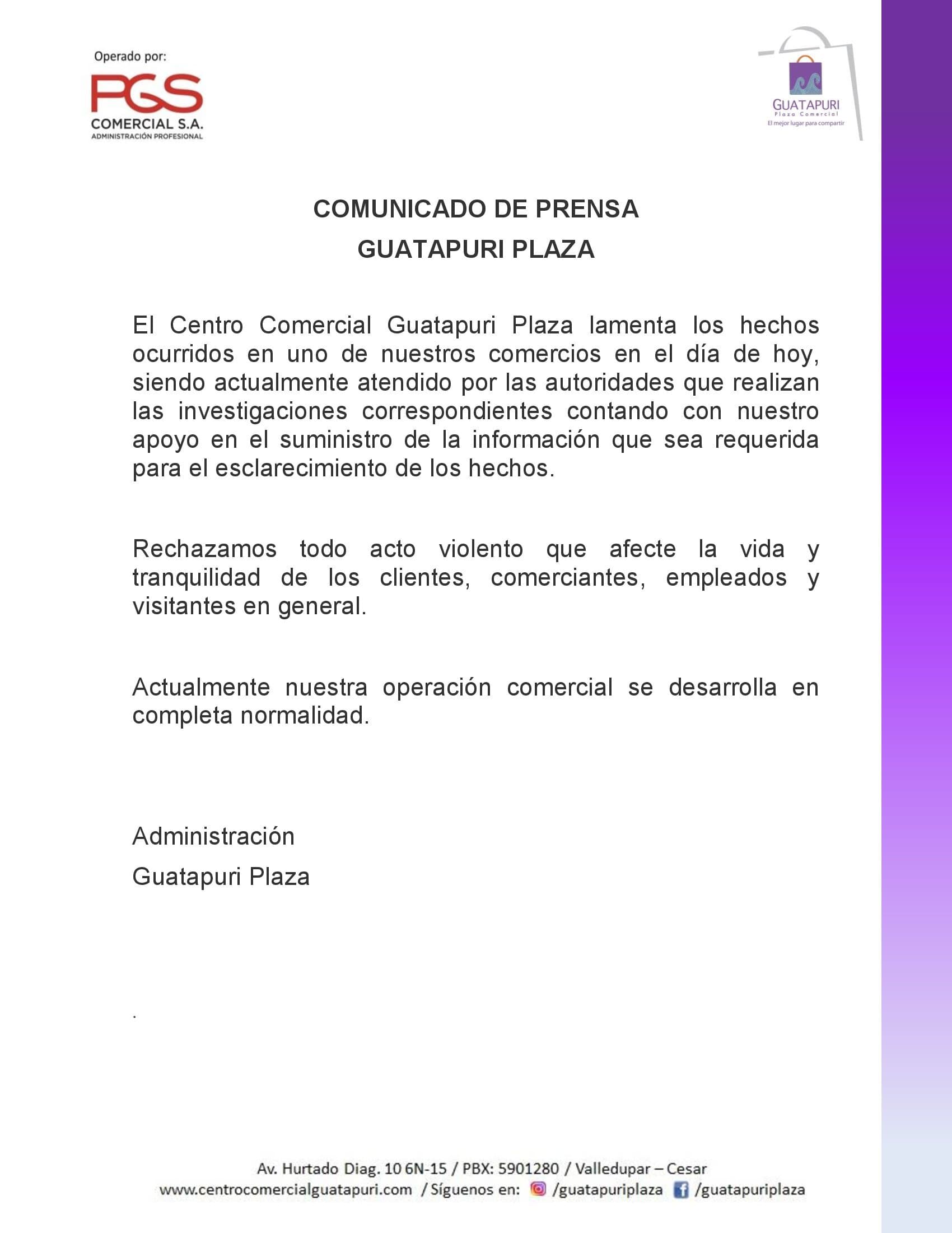COMUNICADO DE PRENSA GUATAPURI PLAZA