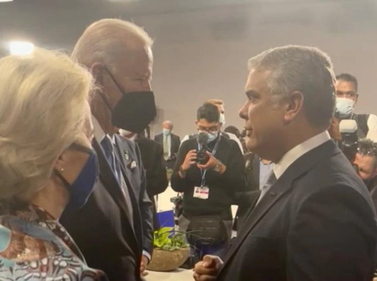 Temprano en la mañana de este martes 2 de octubre, los dos mandatarios sostuvieron el primer encuentro oficial, y de manera presencial, luego de que Duque llegara al poder en 2018 y Biden en enero de este 2021; ocurrió en la ciudad de Glasgow, Escocia, en el marco de la Conferencia de las Naciones Unidas sobre el cambio climático (COP26).