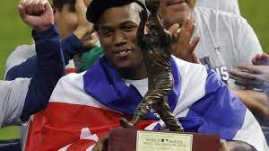 El cubano se acreditó además los honores de ser nombrado el Jugador Más Valioso (JMV) de la Serie Mundial. Soler no comenzó la temporada con los Bravos, pero terminó coronándolos.