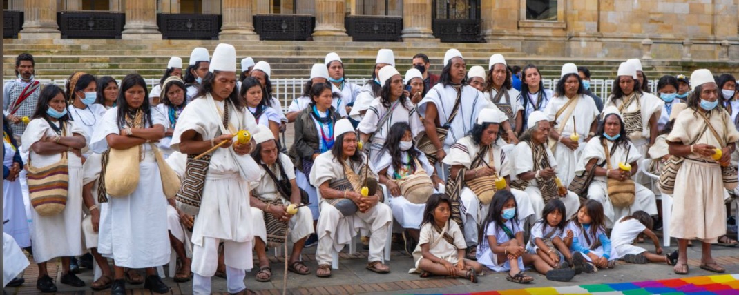 Mamos, autoridades aruhacas y demás miembros de este pueblo indígena asentados en la Sierra Nevada de Santa viajaron hasta Bogotá y desde la plaza Simón Bolívar donde realizaron una concentración pacífica, en medio de su lengua, danzas y costumbres solicitaron al Gobierno nacional la protección de sus territorios y cultura ancestrales.