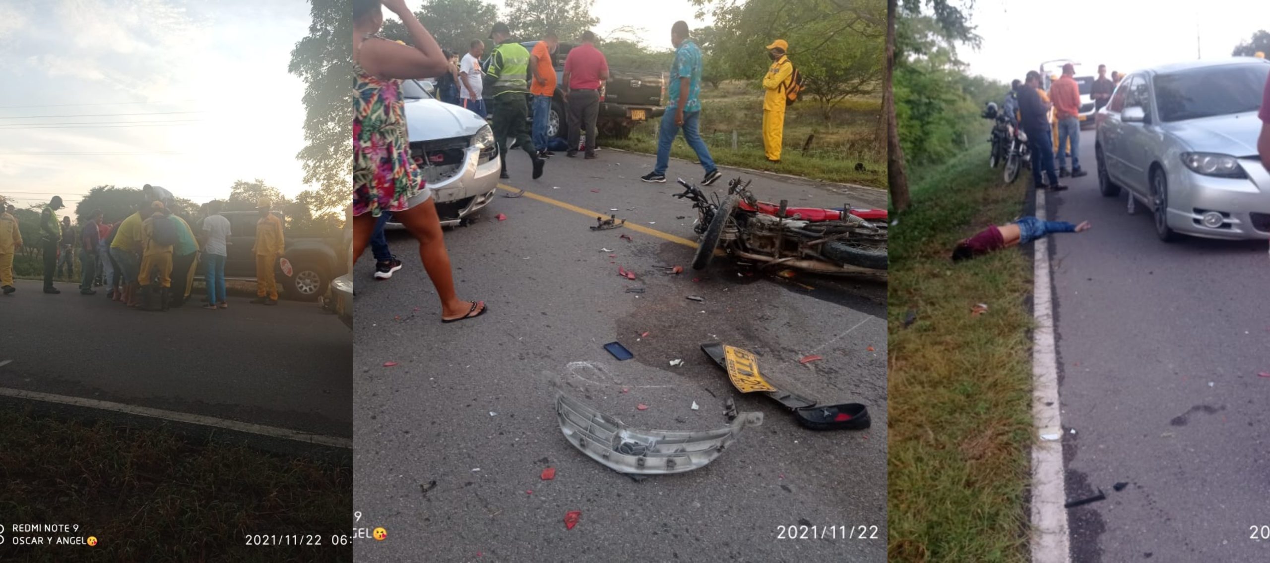 Un mototaxista y dos personas más, quienes, al parecer, eran sus pasajeros perdieron la vida en un grave accidente registrado la mañana de este lunes en la vía Arjona-Cuatro Vientos, jurisdicción de El Paso, Cesar. Una de las víctimas era un niño de 10 años.