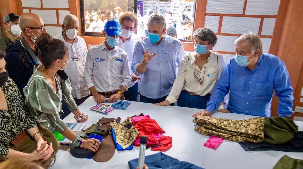 Guterres y Duque se trasladarán esta tarde a Apartadó, también en Antioquia, donde visitarán un Centro de Desarrollo Infantil y recorrerán una feria de emprendimiento de víctimas de la violencia y de reincorporados, con productos como sombreros, calzado, jabones, cacao, café y panela.