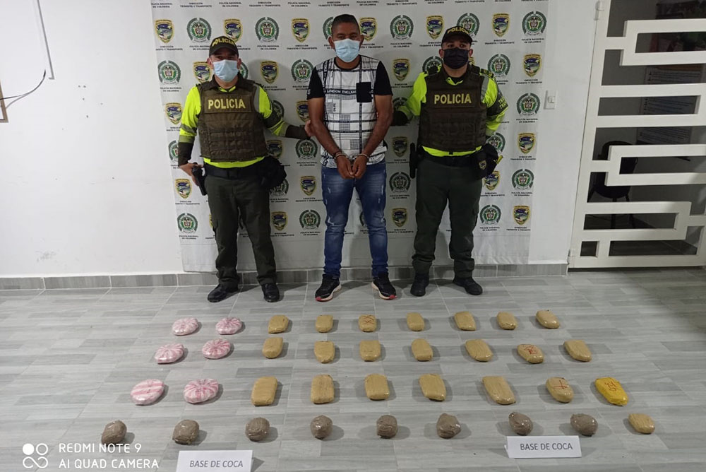 La Policía Nacional en el departamento del Cesar reveló que personal de la Seccional de Tránsito y Transporte capturaron en la vía La Lizama- San Alberto, a Albeiro Martínez Quintero, de 40 años, quien al interior de un vehículo que conducía transportaba 36 paquetes que sumaron 16 kilos de base de coca.