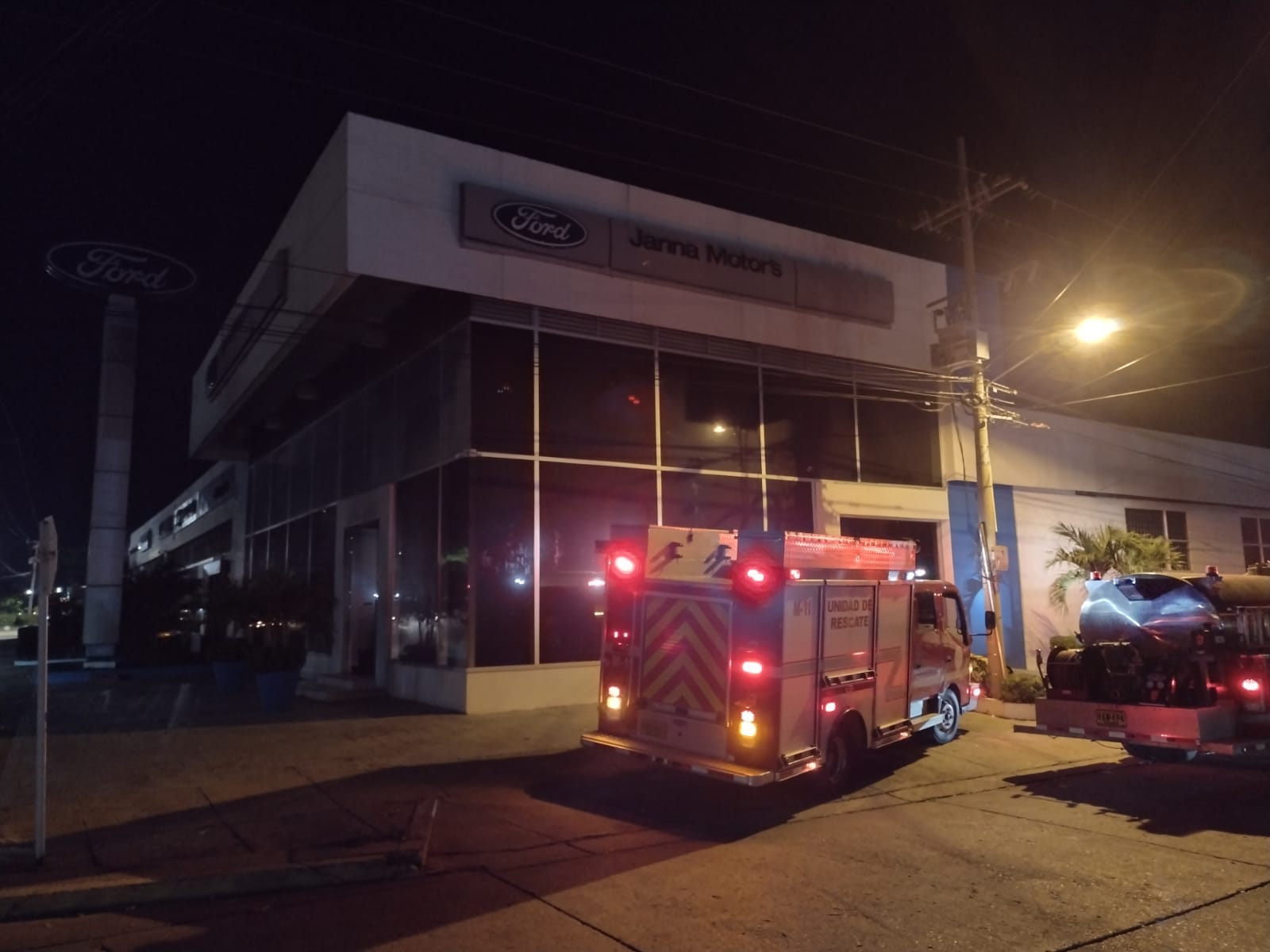 Un fuerte incendio se registró la noche de este lunes en el concesionario de vehículos Janna Motor de Ford, ubicado en la avenida Salguero de Valledupar, el cual fue atendido por el Cuerpo de Bomberos de esta capital.