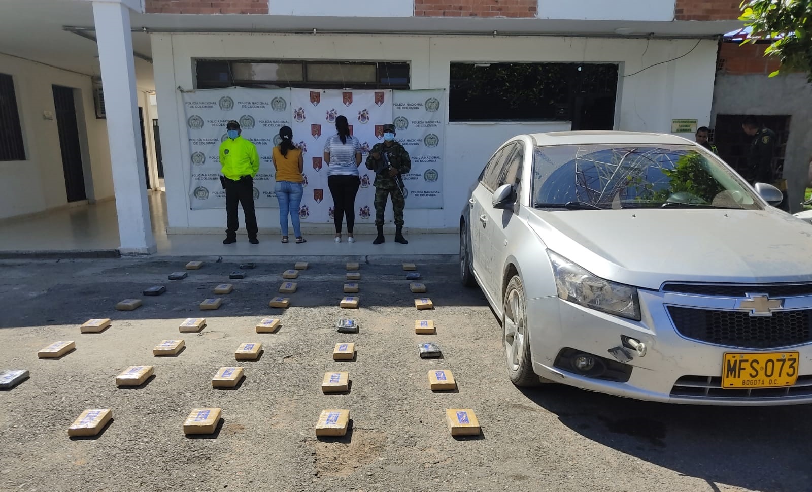 Ambas movilizaban al interior de un vehículo 44.565 gramos de clorhidrato de cocaína, avaluados en $100 millones.