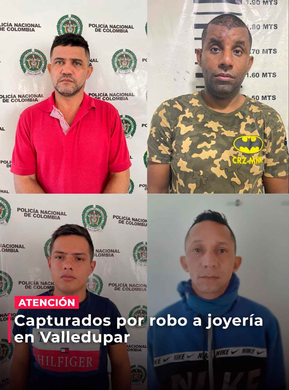 Labores investigativas y diligencias de allanamiento en Valledupar, La Paz, en el Cesar, Riohacha, La Guajira y Soledad, en el Atlántico, realizadas por la Sijín de la Policía en coordinación con la Fiscalía General de la Nación permitió que fueran capturados cuatro hombres presuntamente responsables de los hurtos en joyería de Valledupar, que han mantenido en zozobra en los últimos días a la comunidad en esta ciudad.