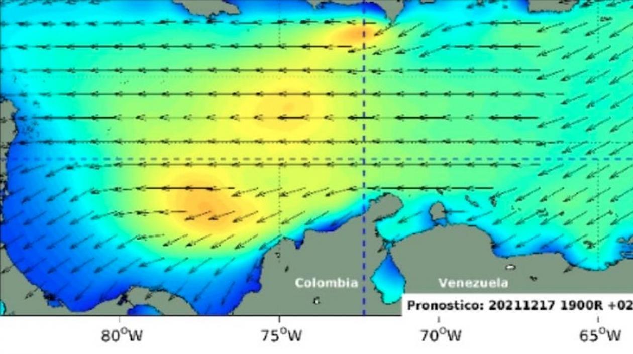 Agregó que “esta interacción está favoreciendo al aumento en la intensidad del viento y del oleaje en la cuenca Caribe, con velocidades de 17 a 27 nudos, es decir de 31 a 50 Km/h, afectando a San Andrés y Providencia, Cartagena, Barranquilla, Santa Marta, Riohacha y Puerto Bolívar”.