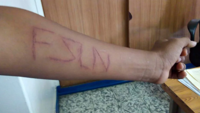 El documento recoge el testimonio de Lenin Rojas Contreras, un joven al que el arrancaron las uñas cuando fue detenido en julio de 2018. “Pusieron mi mano sobre la mesa, luego me colocaron la rodilla encima de la mano y con una tenaza me jalaron la uña. La uña se despegó con pedazos de piel y carne colgando. Yo sentía cuando la uña y el pellejo se iban desprendiendo de la carne y la sangre brotaba, es un dolor que no se lo deseo a nadie, ni a mi peor enemigo”.