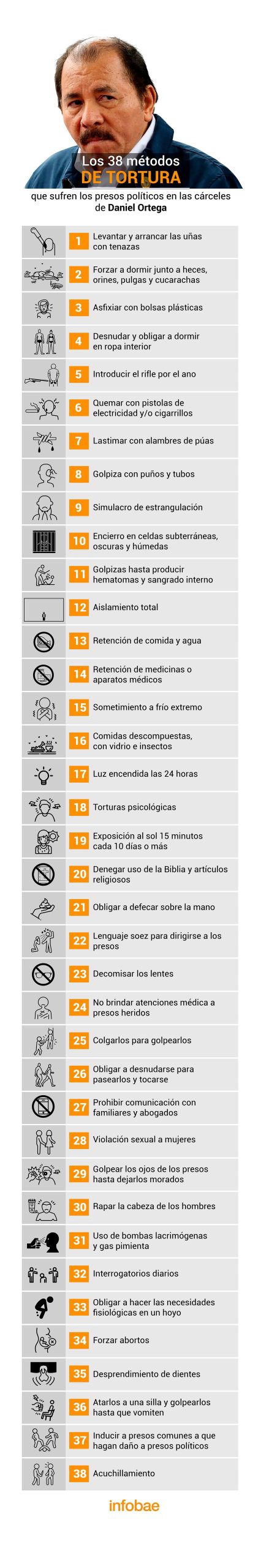 Los 38 métodos de tortura que utiliza el régimen de Ortega contra los presos políticos