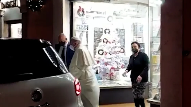 El papa Francisco salió del Vaticano para ir a una tienda de discos en el centro de Roma