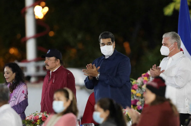 Daniel Ortega organizó una puesta en escena provocadora con un alto valor simbólico. Siguió, con esmerado detalle, el libro de otros dictadores que lo abrazaron sonrientes en su día de gloria. Miguel Díaz-Canel y Nicolás Maduro cobijaron al jefe de estado nicaragüense de 76 años, quien mandará en el país centroamericano por quinta vez en su vida, aunque esta vez sin políticos molestos a la vista.