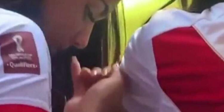 Se trata de dos hinchas de Perú, que vestían la camiseta de su selección y que fueron captadas inhalando, lo que al parecer era una sustancia psicoactiva.