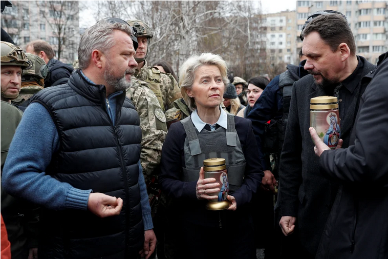 Ursula von der Leyen llegó a Bucha, la ciudad masacrada por las tropas de Putin