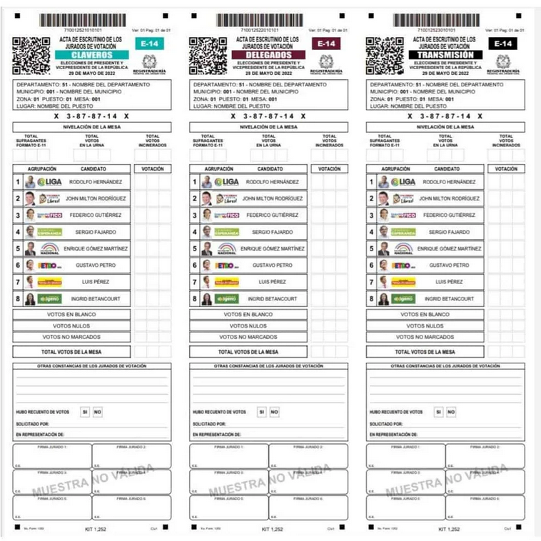 Así será el nuevo formulario E-14 para las elecciones presidenciales en Colombia