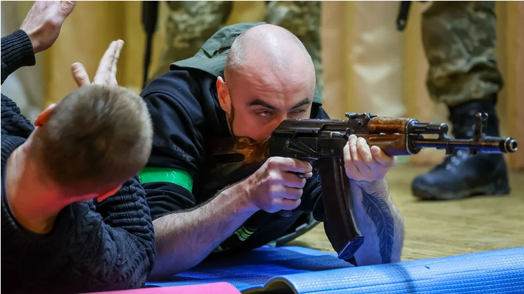 Félix es el nombre en clave de un veterano de la guerra del Donbás que resultó herido en 2016 y tuvo que abandonar el frente. Ahora es el instructor de “miles de muchachos” que se han alistado voluntariamente para frenar el avance ruso.