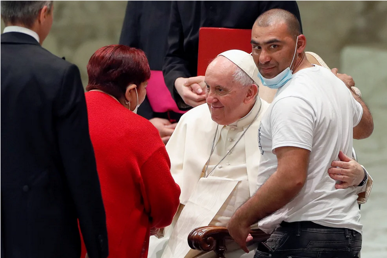 Francisco ha recibido hoy en audiencia a un grupo de peregrinos eslovacos y, como prometió, saludó a una fila de ellos al término del encuentro sentado en el escenario del Aula Pablo VI.