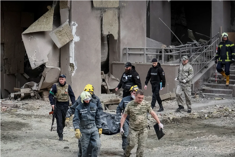 Imágenes del edificio en el centro de Kiev donde los misiles rusos asesinaron a la periodista Vira Hyrych