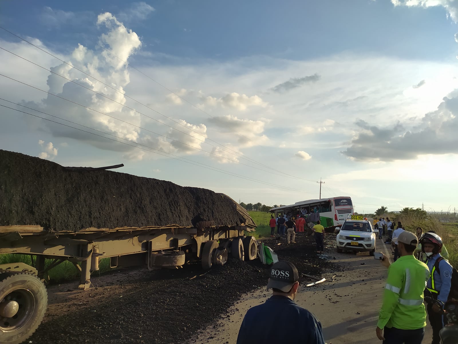 Igualmente se conoció que el accidente se debió a que el conductor del bus colisionó con una tractomula cargada com carbón que estaba parqueada a orillas de la vía.