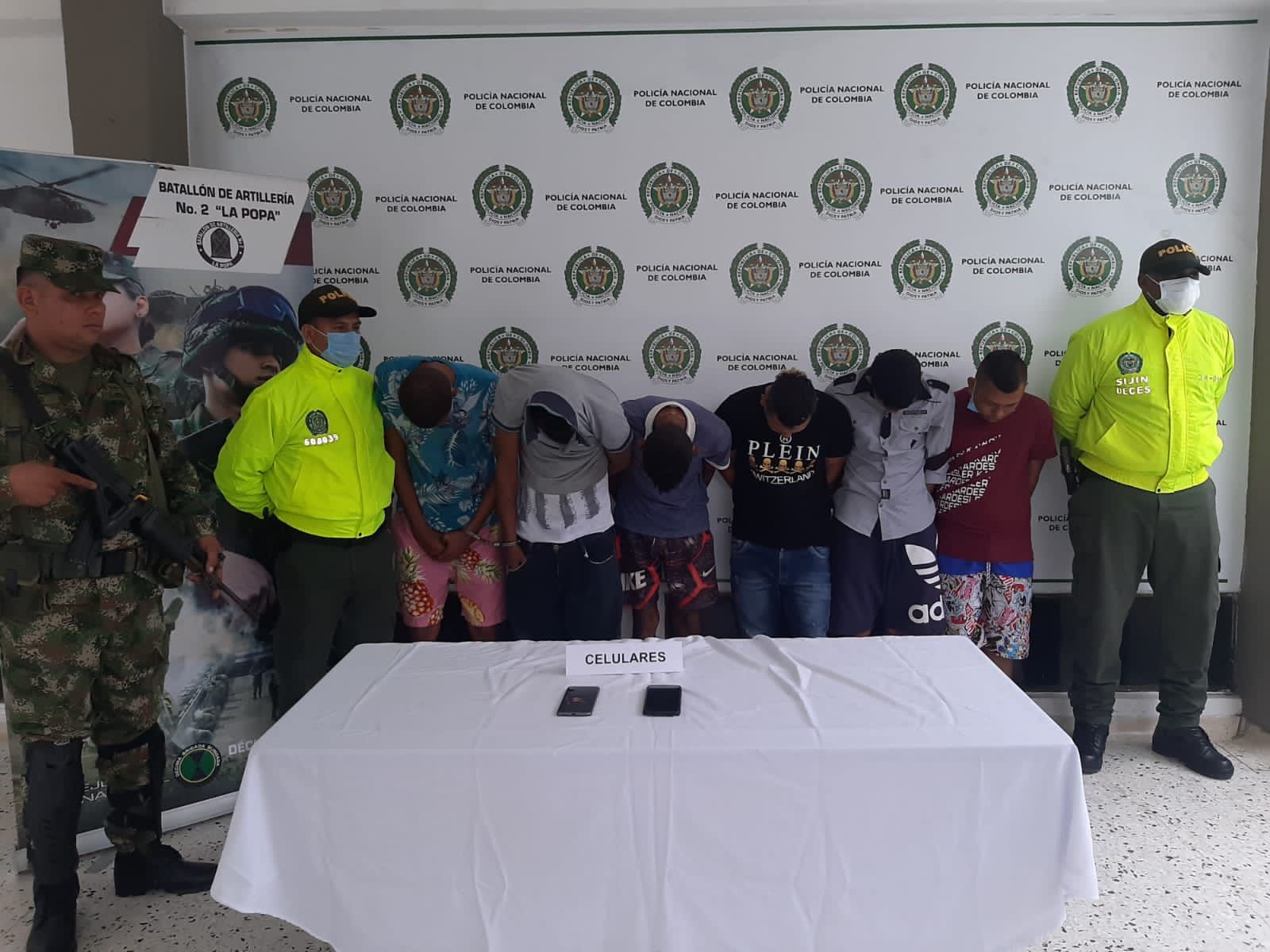 Los capturados responden a los nombres de: Alcides Javier Mieles Rodríguez, alias Mai; César Augusto Guerra Ibarra, alias Tayson; Jhon Mojica Imitola, alias Jhon Kevin; Heiner Giovanni Bolaños Pérez, alias Chupo; Keiner David Lázaro Borrego, alias Chatico; Jesús David Millán Bolívar, alias Jesús Mariihuana; Kevin Enrique Frías Hernández, alias Orejas y Carlos Andrés Torres Aguilar. Todos serán presentados ante un juez de control de garantías para la respectiva judicialización.