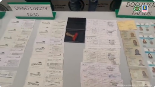 Labores de policía judicial evidenciaron que los falsos documentos eran ofrecidos a personas que no habrían tenido acceso a la vacuna o que se resistían a esta.