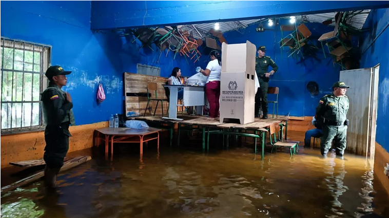 Por otro lado, en la vereda Calzón Blanco del municipio de Sucre, Sucre, los electores deben asistir a los puntos de votación en medio del agua, pues las fuertes lluvias han provocado inundaciones que alcanzan casi un metro de altura. No obstante, la Defensoría reveló que no hay reporte de anomalías en esta región. Con Infobae